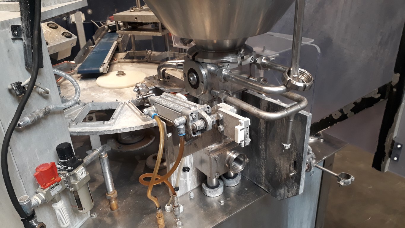 2 head Rotary filler, sealing and snap cap. 5x Format sets with the machine. Currently on the machine format 01: Rectangular ± 150 x 110 mm (only 1 cup filling at the time, capacity max 2000 cups/h), Format 02: round: ± 80 mm, Format 03: round: ± 90 mm, Format 04: round ± 105 mm and Format 05: round ± 110 mm. Stations: cup destacking, main piston doser for viscose products with double jacketed hopper with agitator in hopper for hot fill (CIP cleanable), preformed seal dispending by vacuum, heat sealing, snap-on lid, outfeed on +/- 1 meter single lane outfeed conveyor. Machine has Plexiglas safety guards. Easy format change. Relay controlled with on/off switches.