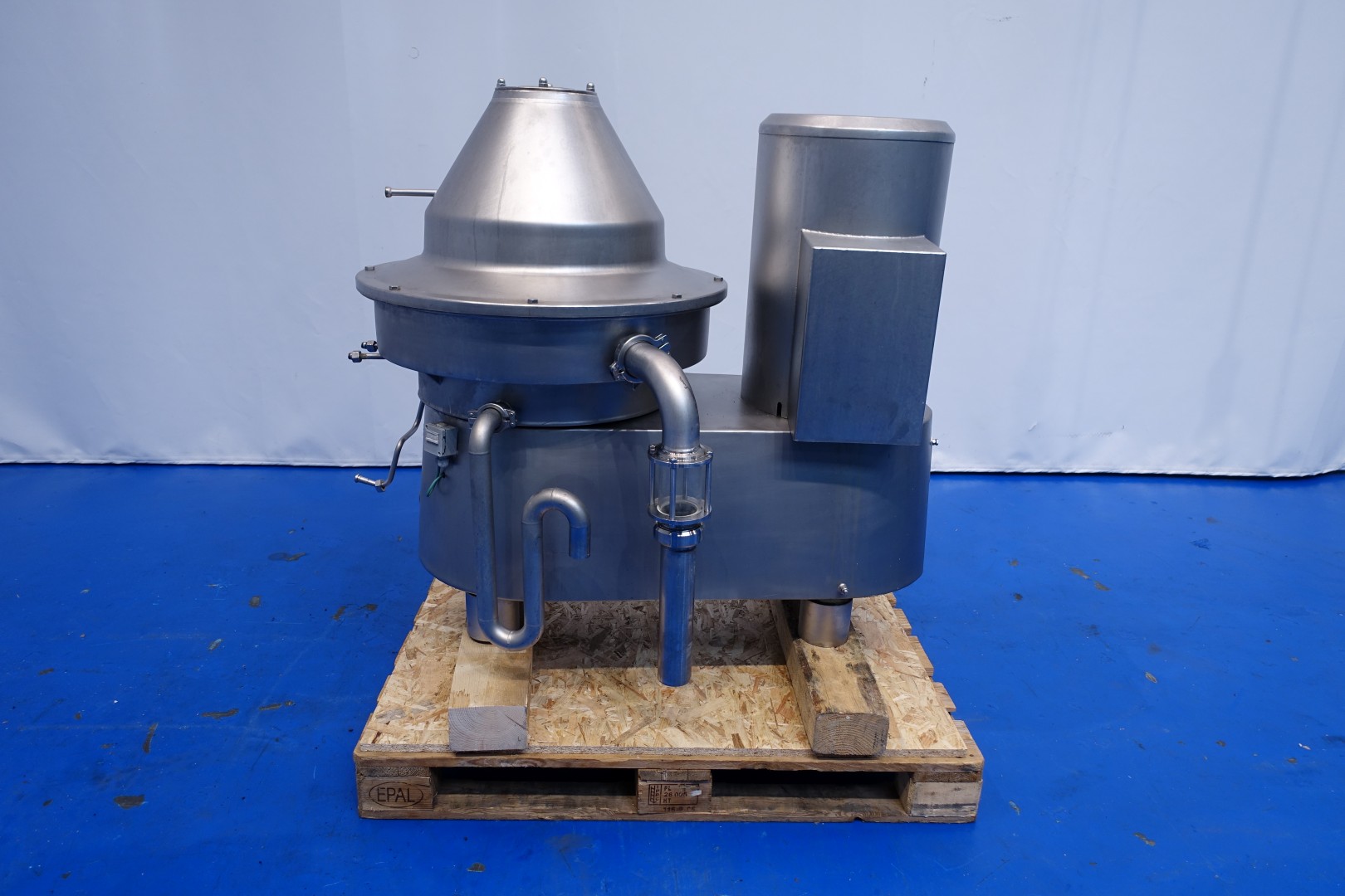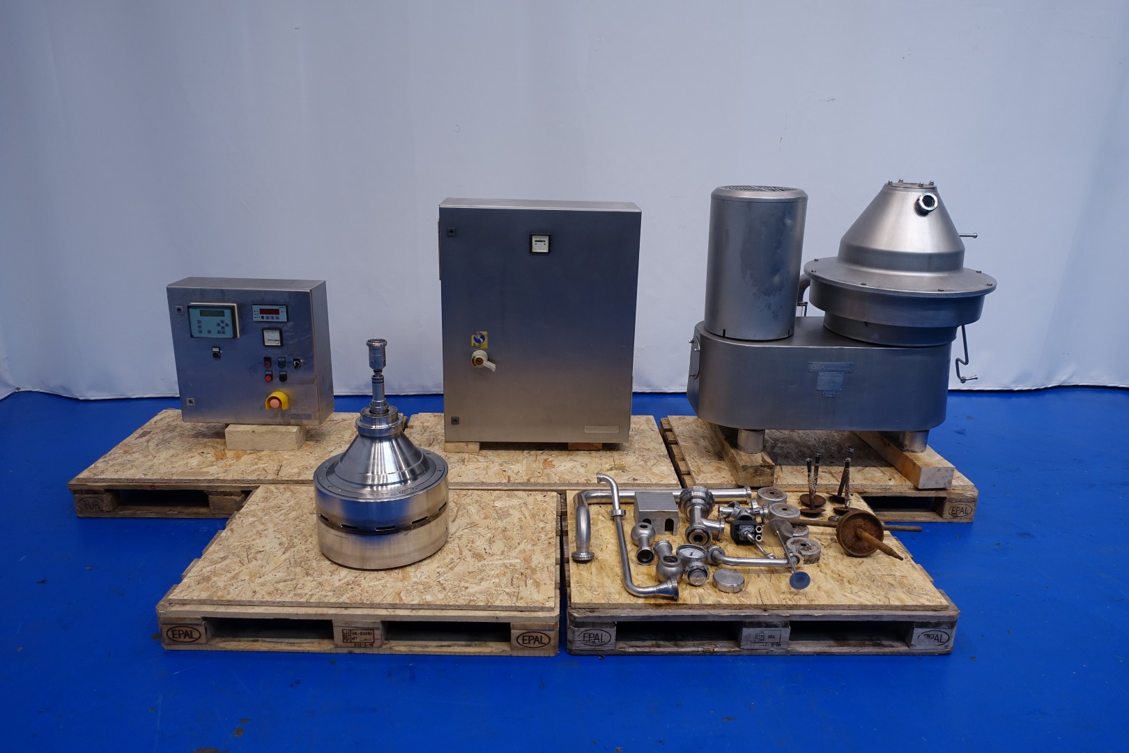 Cream separator, self cleaning. Including bowl, bowl speed: 7.500 rpm, motor cover, pneumatic counter pressure valve. manual control valve for cream. Motor: 15 kW - 27 A - 2.940 rpm. With free standing westfalia control panel with standard Westfalia controls with Danfoss frequency convertor, including part of tools, Total dimensions: 120x82x106 (lxwxh) - weight: 1.037 kg.
